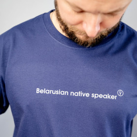 Мужчынская футболка «Belarusian native speaker» сіняя з індывідуальным прынтом